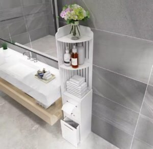 • 1 bac inférieur coulissant idéal pour rouleaux de papier toilette, produits d’entretien ou serviettes
